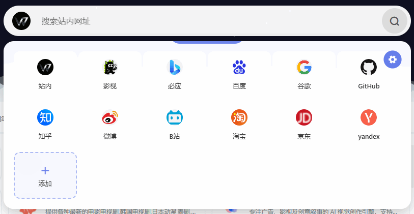 搜索框:支持自定义搜索引擎,拖动修改排序。