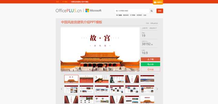 这些模板下载也方便,直接进入模板详情界面,点击16:9模板下载就可以保存到本地了。