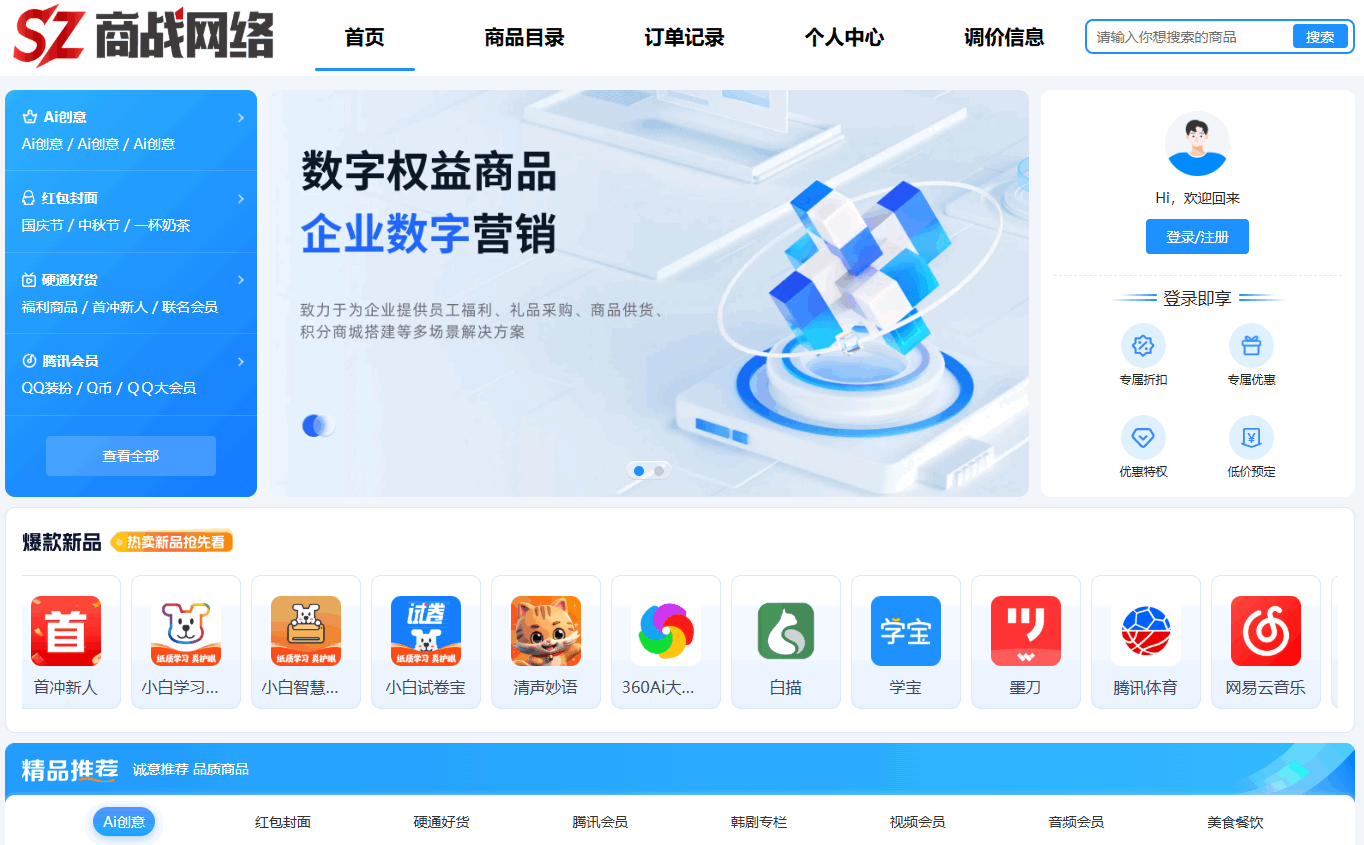 商战网络是一家专业高品质的权益综合服务平台,旨在提供安全、高效、便捷的生活方式,帮助您足不出户轻松实现高品质收益,主营视频会员、美食饮品、微信红包封面货源,购物礼品卡、积分、加油卡等多种权益服务。