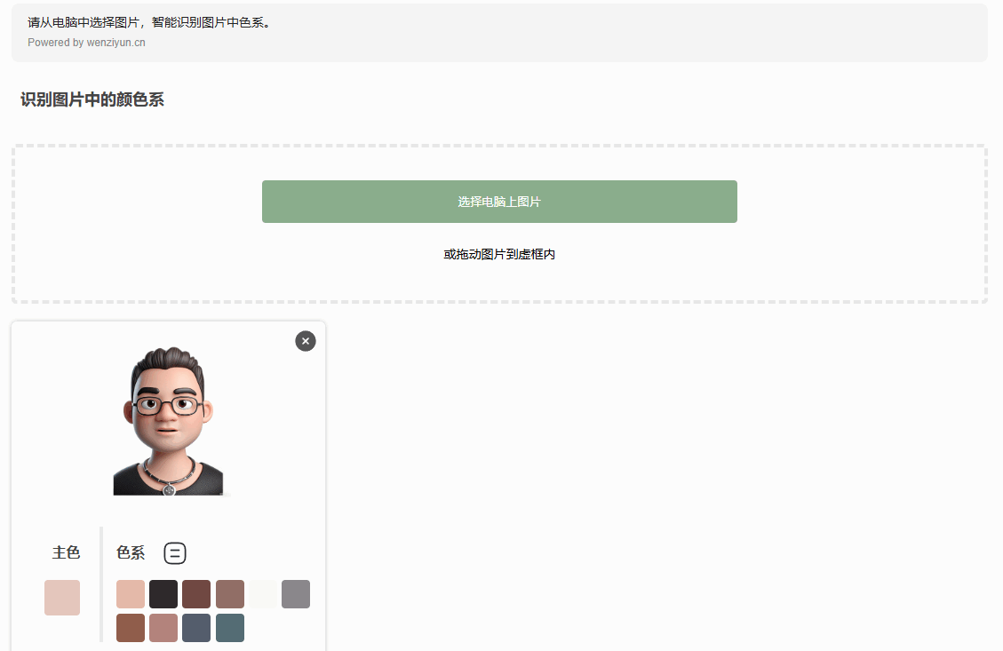 在线图片取色器网站,支持上传图片识别颜色及色值,提供颜色组复制功能,助力设计...