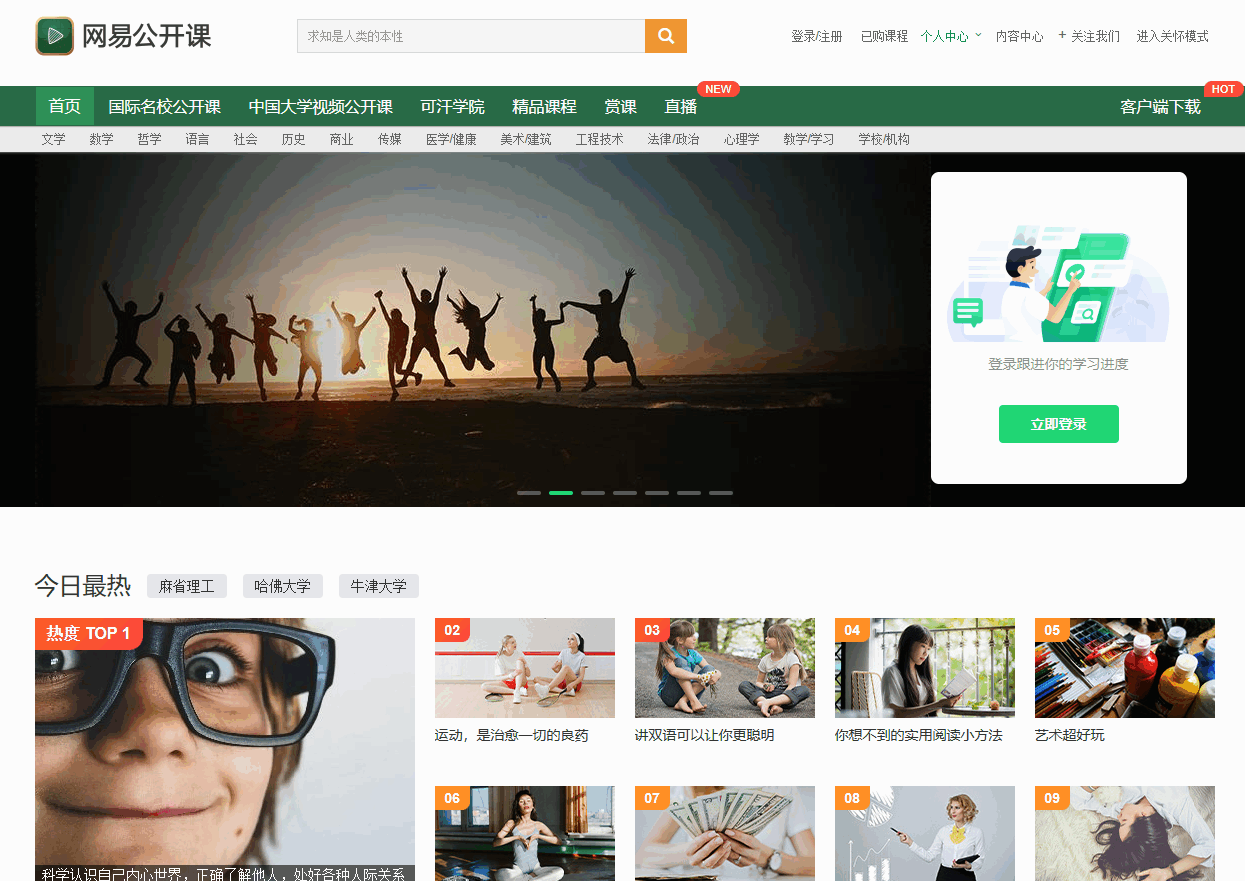 网易公开课汇集清华、北大、哈佛、耶鲁等世界名校共上千门课程,覆盖科学、经济、...