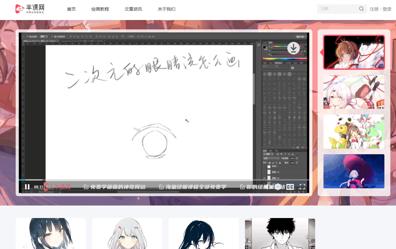 免费学绘画羊课网,汇聚海量插画教程、游戏原画教程、动漫教程、SAI手绘教程、PS数...